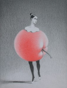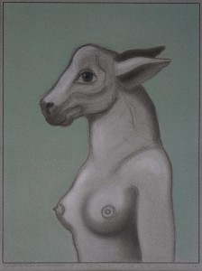 Ein Teil der Arbeiten auf Leinwand begleitet und übernimmt das zeichnerische Oeuvre, während ein anderer sich vergleichbar zu den Pastellen der Darstellungen von Bildnissen zuwendet. Ganz anders die comic-artigen Acrylarbeiten, die oft eine Elefantenfigur in einem ironischen Verhältnis zu Pikantem zeigen.
